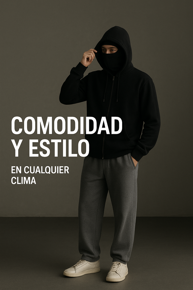"Combinación perfecta de estilo y misterio: chaqueta oversize + balaclava en modo sigilo."